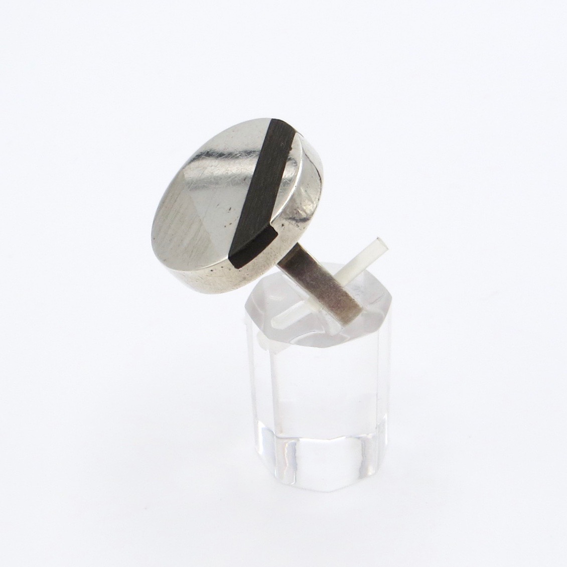 Silver & Ebony Ring Home / Shop Silver & Ebony Ring $68.00 Home / Shop Silver & Ebony Ring $68.00 Reference Number: 5JR25-silver-round-ring Maximum quantity exceeded Minimum purchase amount of 0 is required Maximum purchase amount of 0 is allowed Your Price: $68.00 68.000 A one-time price of $68.00 will be added to your order. 1 Left in Stock Categories: Jewellery, Rings Description Age: c.1970sSize: 7. Ring is just under 1" in diameter.Sterling silver ring set with a band of ebony. One portion of the ring's surface is polished to a matte finish.Tags: Silver, WoodRef: 5JR25-silver-round-ring
